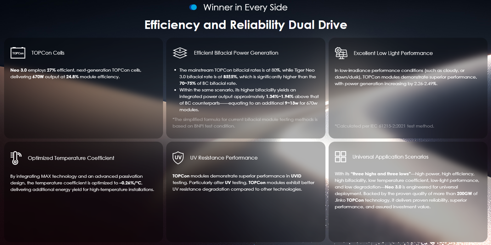 Jinko tiger Neo 3.0 N Type Topcon 650W 655W 660W 670W Jinko Solar Panels Mono Photovoltaic Panel 66QL6-BDV Bifacial