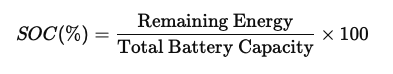 State of Charge (SOC) indicates the remaining energy in a battery.